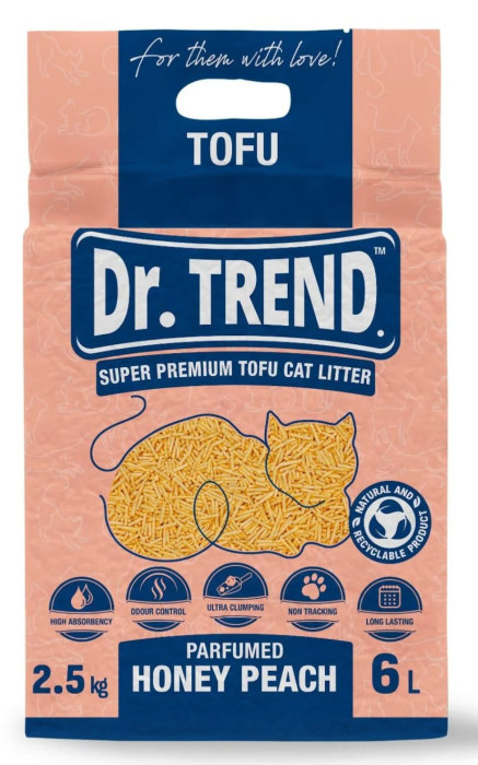 Asternut igienic Dr.Trend Premium pentru pisici, Tofu Piersica, 6L/2.5kg