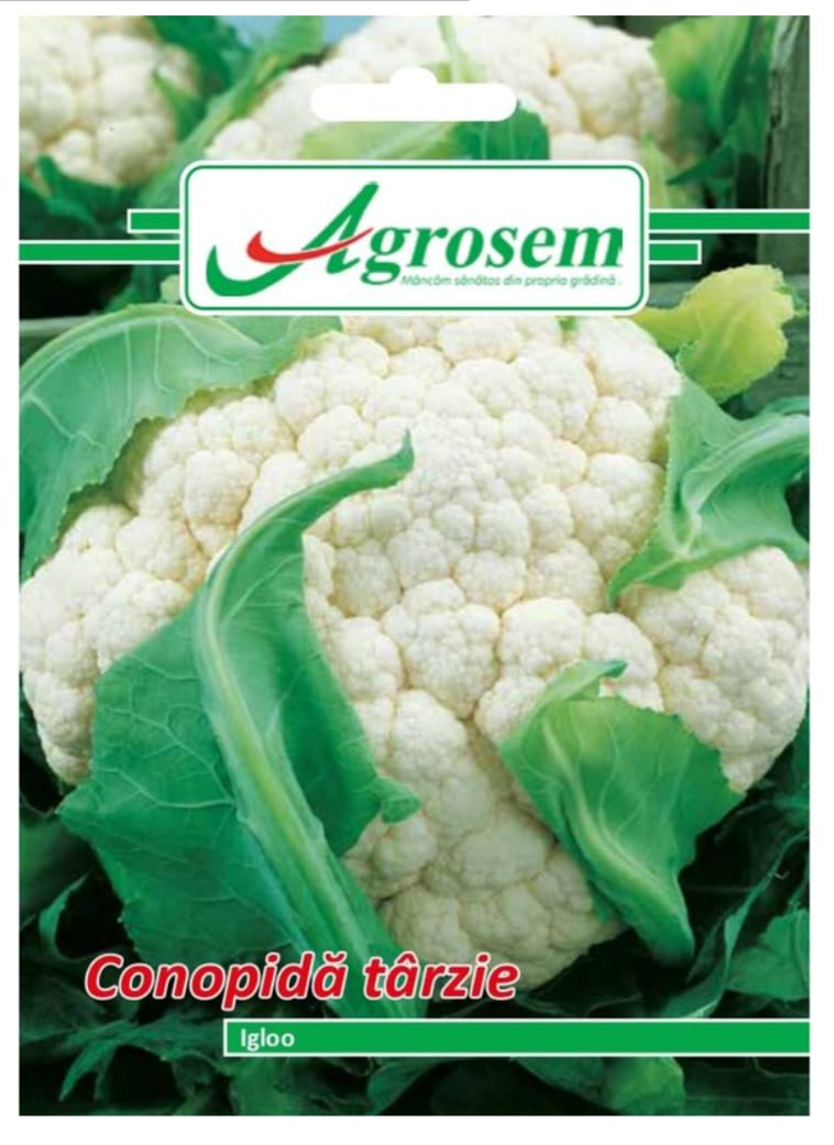 Conopida Igloo este un soi tardiv, foarte productiv, recunoscut pentru inflorescențele sale mari, compacte și albe, acoperite natural de frunze protectoare.